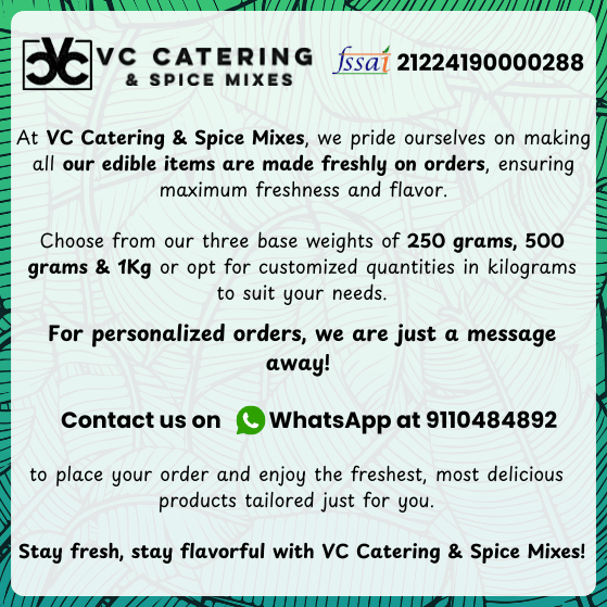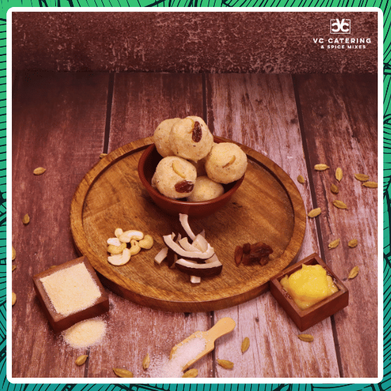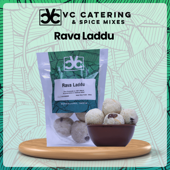 Rava Laddu is a beloved Premium Festival Sweet that melts effortlessly in your mouth—crafted from roasted semolina (rava), fragrant ghee, and mellow sugar, accented with cardamom. At VC Catering & Spice Mixes, our Rava Laddu is handcrafted in small batches to offer both nostalgia and indulgence in every bite.